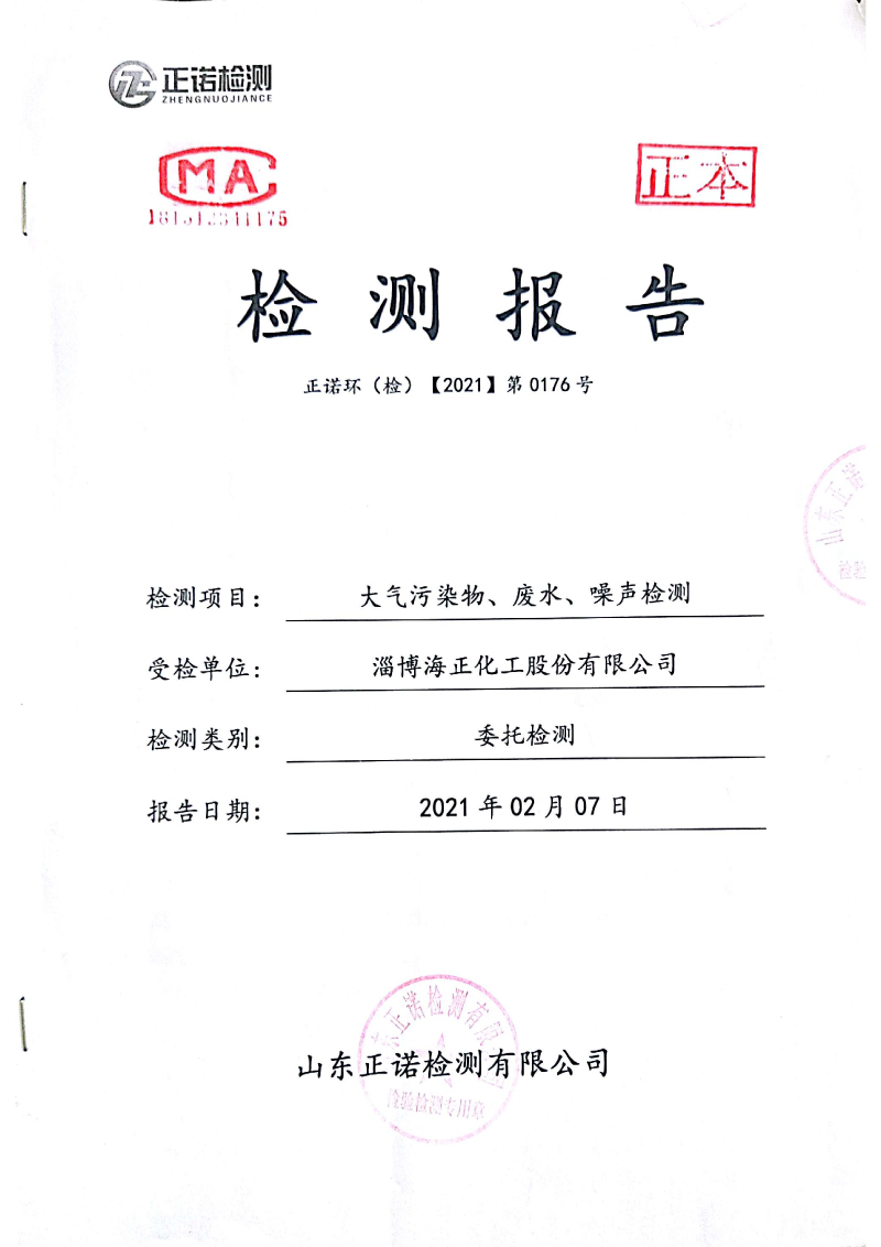 2021年2月大氣污染物、廢水、噪聲檢測(cè)報(bào)告